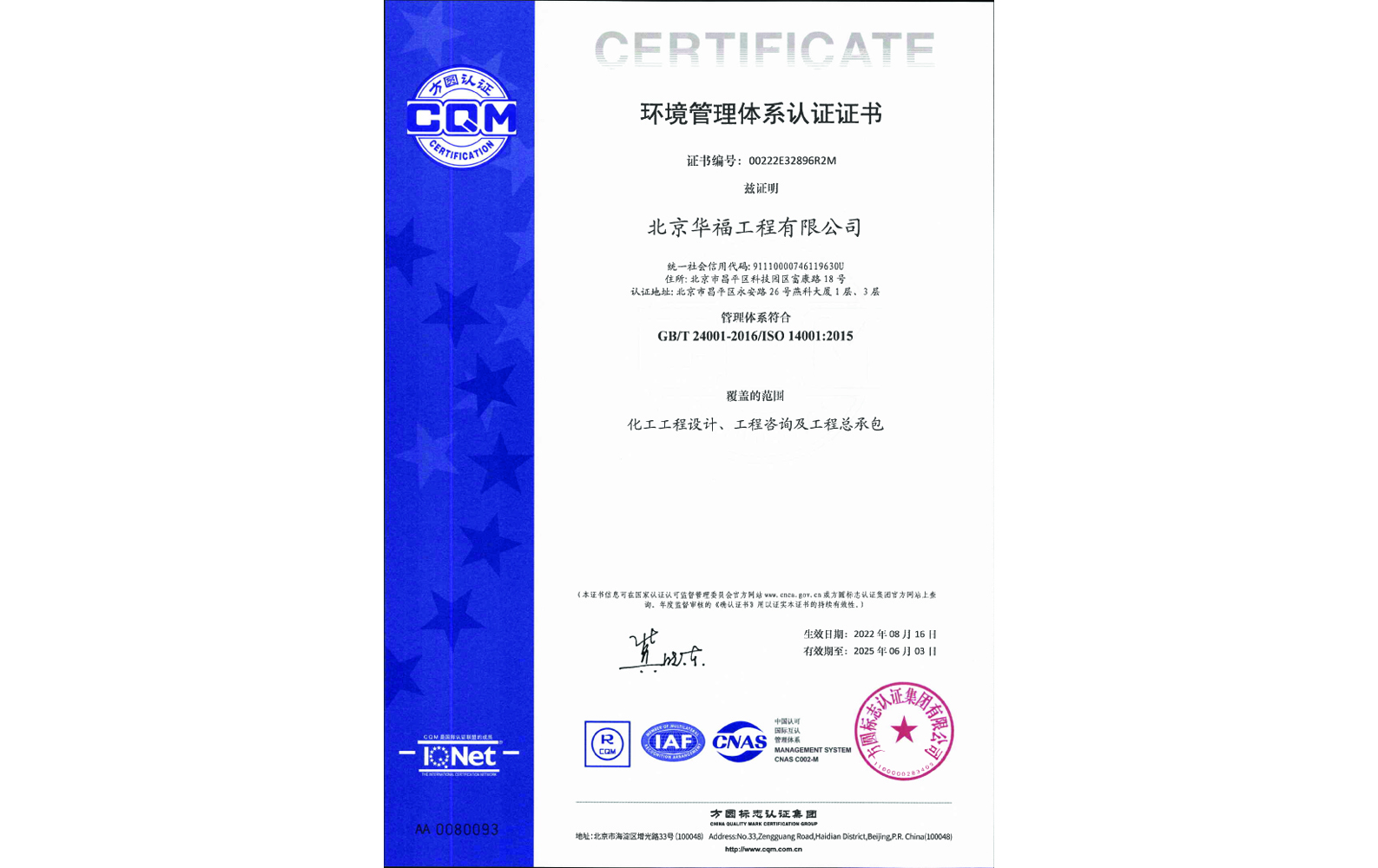 Environmental Management System Certificate